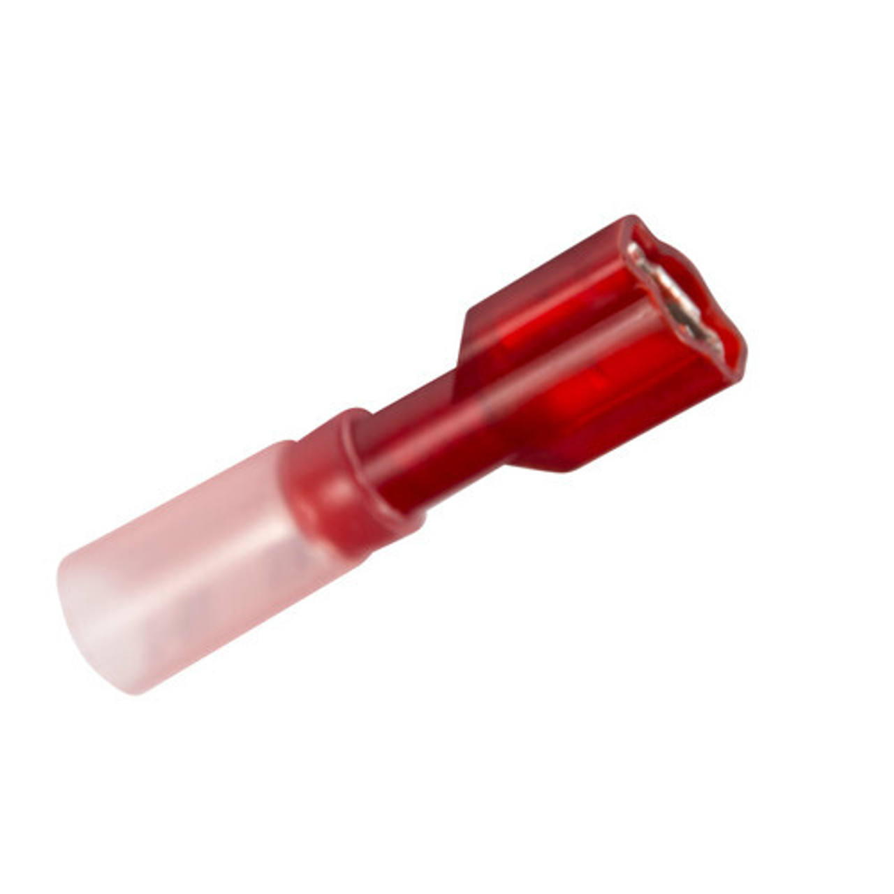 Quick Heat Shrink Disconnect Connectors make it easy to replace parts and circuits with the most reliable wire crimp connection possible. Our dual-wall heat shrink cover fully insulates every assembled connection, helping protect from shorts, vibration, corrosion, moisture and more. Heat Shrink Connectors also provide strain relief—Heat activated adhesive further strengthens the bond. Prevent wiring failures and reduce equipment downtime by choosing certified electrical connectors.